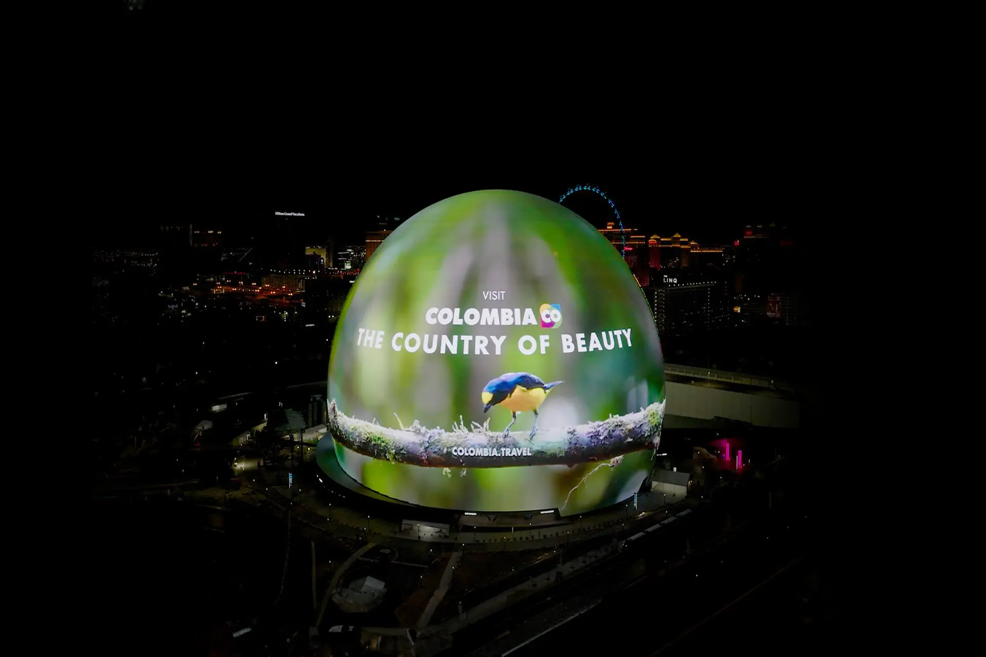 Como parte del lanzamiento global de la campaña, Colombia se toma del 25 de noviembre al 1 de diciembre la Exosphere, la pantalla envolvente de Sphere en Las Vegas. Allí, se proyectará un video que sigue el vuelo de un ave migratoria a través de destinos icónicos como el Tayrona, Cartagena, Caño Cristales y el Valle del Cocora. Esta activación, liderada por ProColombia, no solo refuerza la narrativa de Marca País, sino que también integra un componente interactivo: un código QR que dirige a ofertas exclusivas durante Black Friday, Cyber Monday y Travel Tuesday, incentivando a los viajeros a planear su visita a Colombia.