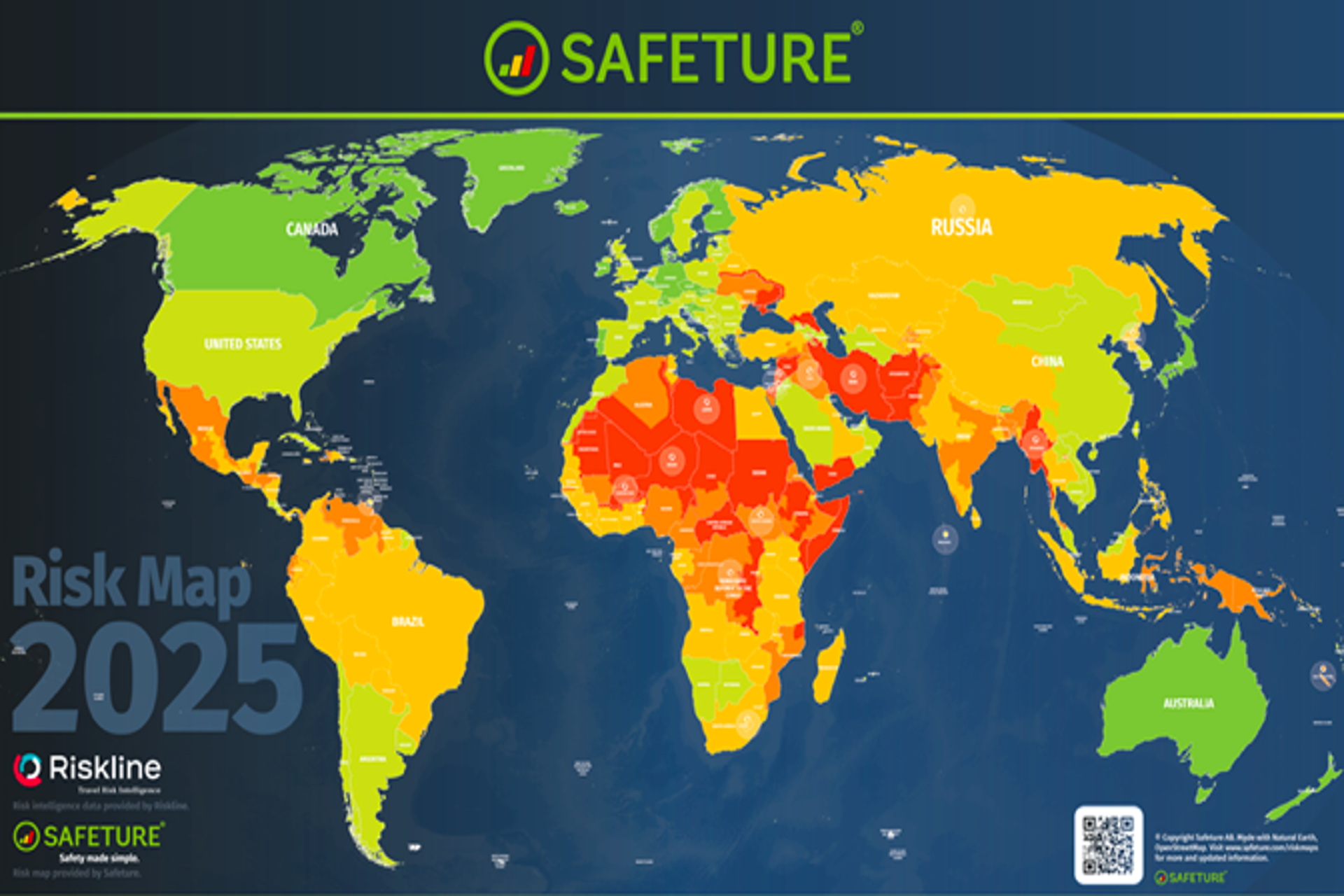 Mapa de riesgo de 2025. Fuente: Riskline/Safeture