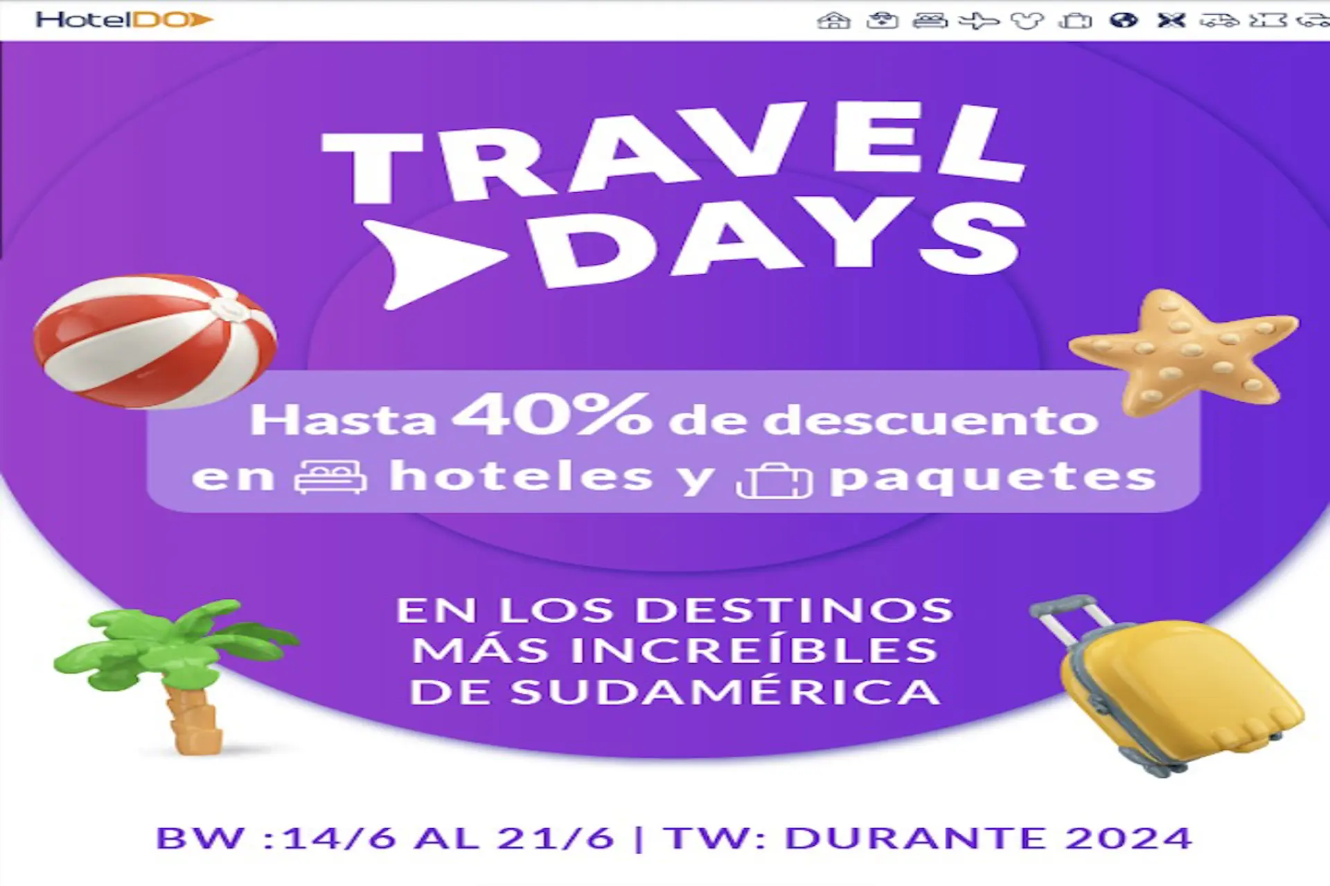 HotelDO, plataforma B2B de viajes líder en Latinoamérica, se enorgullece en anunciar su participación en Travel Sale en Colombia, en una campaña de marca denominada Travel Days, del 14 al 21 de junio, que promete ser una semana llena de oportunidades y descuentos irresistibles para los viajeros.