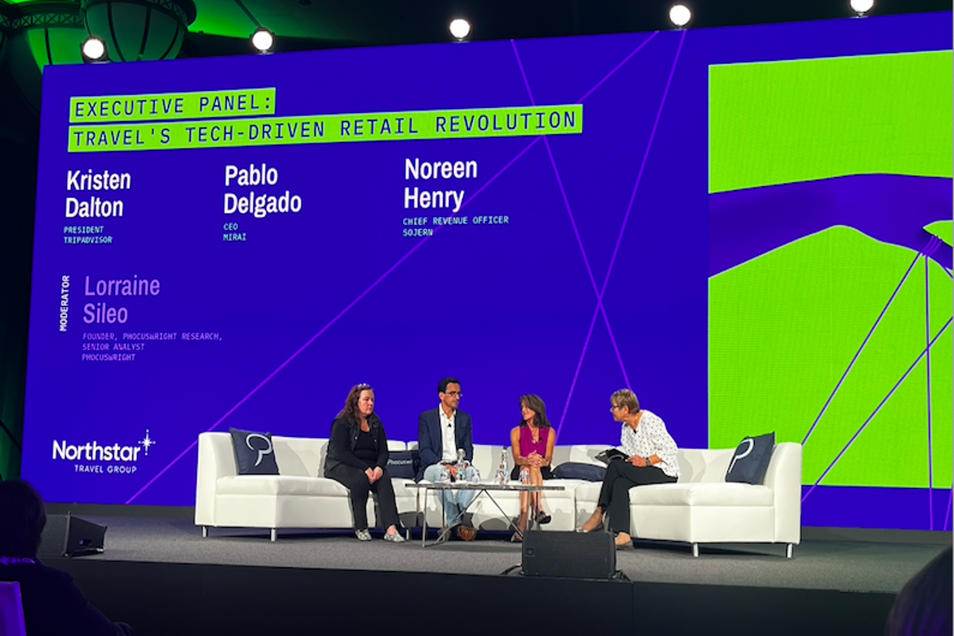Moderado por Lorraine Sileo, de Phocuswright, el panel analizó cómo la IA está sacudiendo el mundo de las ventas de viajes online, y contó también con la participación de Kristen Dalton, presidenta de TripAdvisor, y Noreen Henry, Chief Revenue Officer de Sojern.