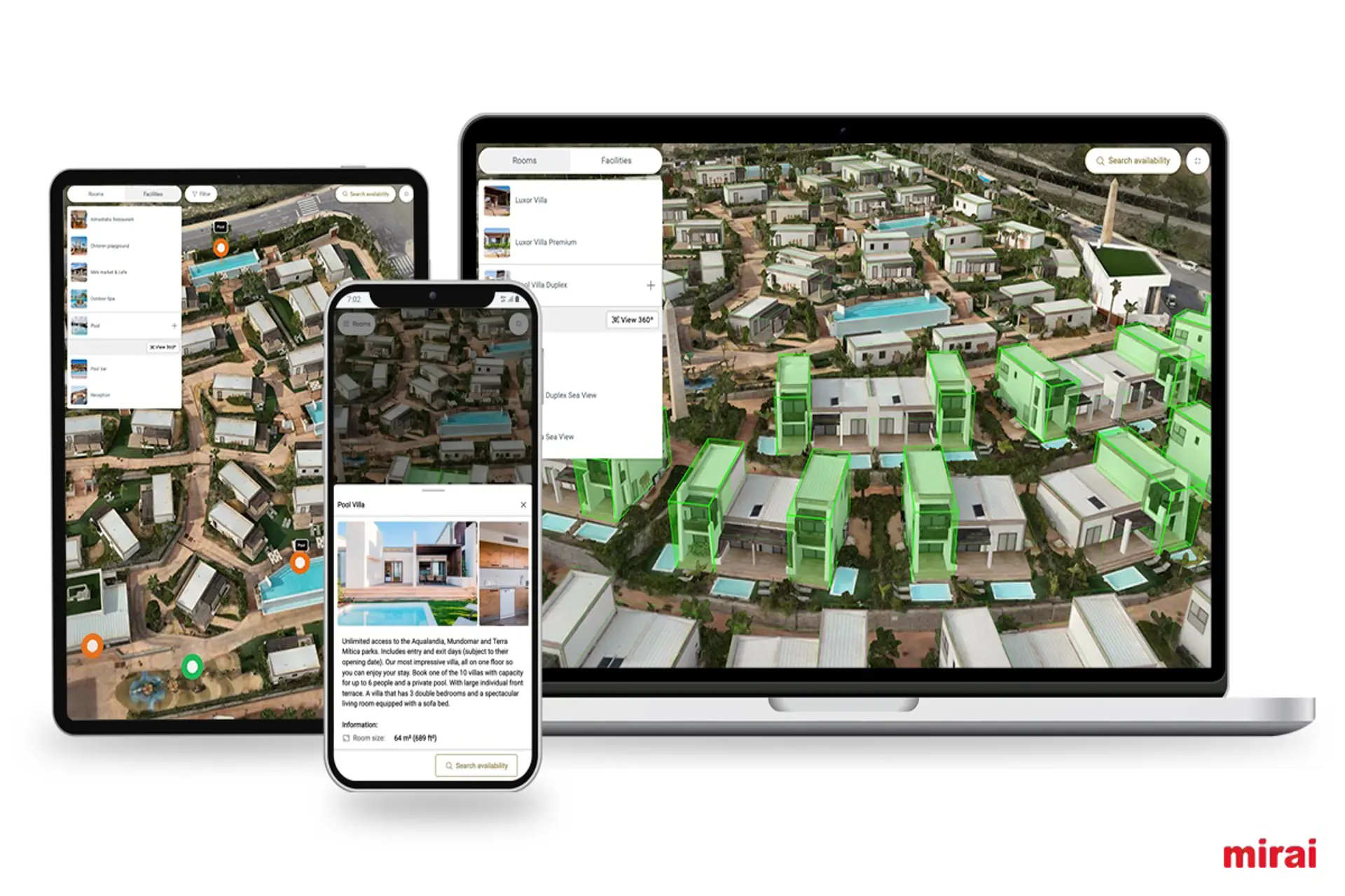 - Mirai Twin permite a los clientes explorar los hoteles en detalle en 3D antes de su llegada, ofreciendo imágenes a vista de pájaro, tours por las instalaciones, entrada a las habitaciones y una sensación de autenticidad de la propiedad desde cualquier dispositivo.