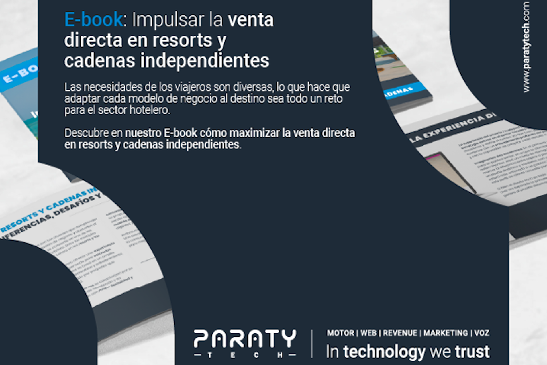 Paraty Tech lanzó el 𝙀𝙗𝙤𝙤𝙠: "𝙄𝙢𝙥𝙪𝙡𝙨𝙖𝙧 𝙡𝙖 𝙫𝙚𝙣𝙩𝙖 𝙙𝙞𝙧𝙚𝙘𝙩𝙖 𝙚𝙣 𝙧𝙚𝙨𝙤𝙧𝙩𝙨 𝙮 𝙘𝙖𝙙𝙚𝙣𝙖𝙨 𝙞𝙣𝙙𝙚𝙥𝙚𝙣𝙙𝙞𝙚𝙣𝙩𝙚𝙨", en donde desvela las estrategias y herramientas esenciales para potenciar el canal directo, fidelizar clientes y garantizar un servicio de excelencia en estos alojamientos.