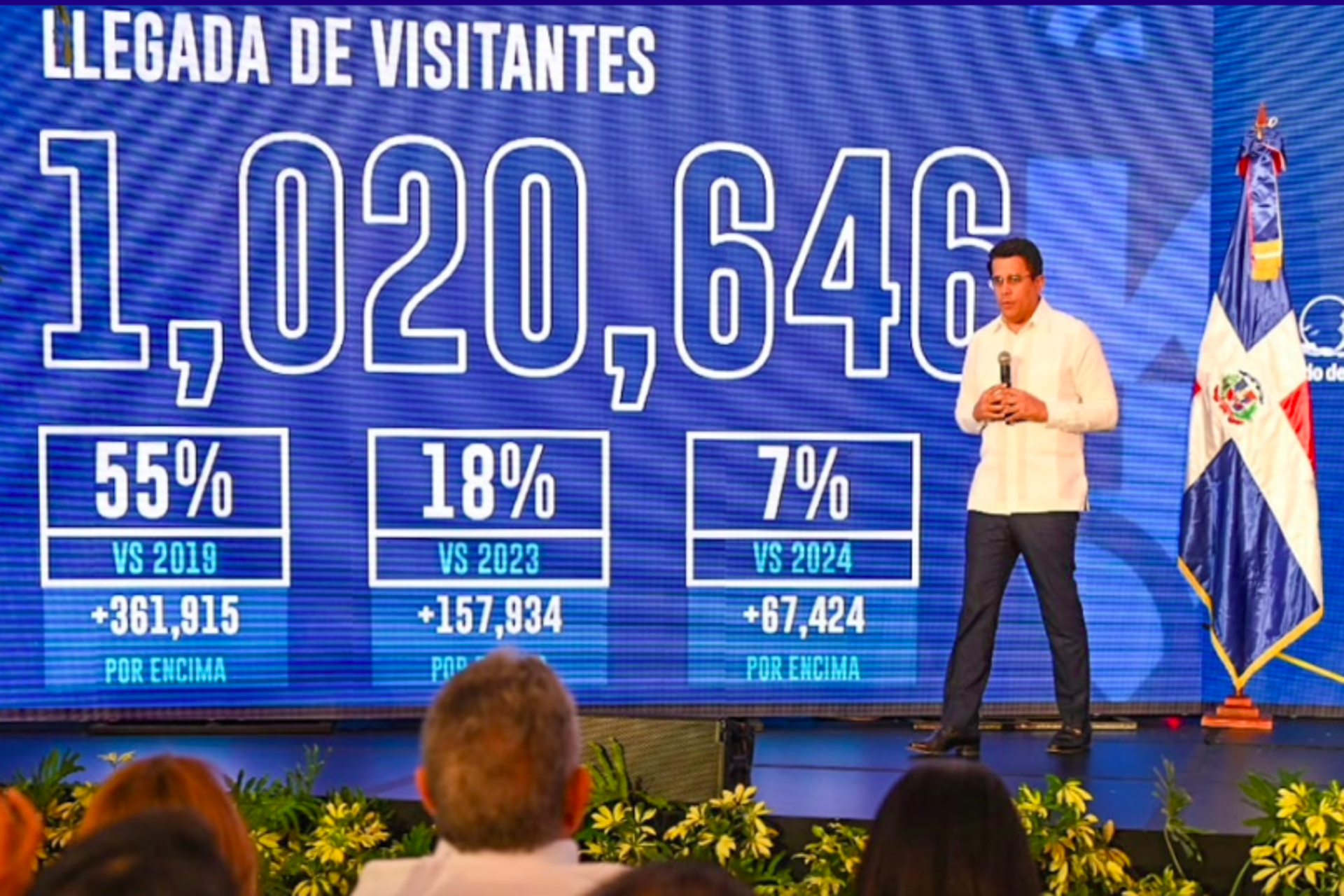 El funcionario señaló que la llegada de 1,020,646 de visitantes en abril representa un aumento de un 7% respecto al mismo mes del 2024, un 18 del 2023 y un 55% con relación al 2019.